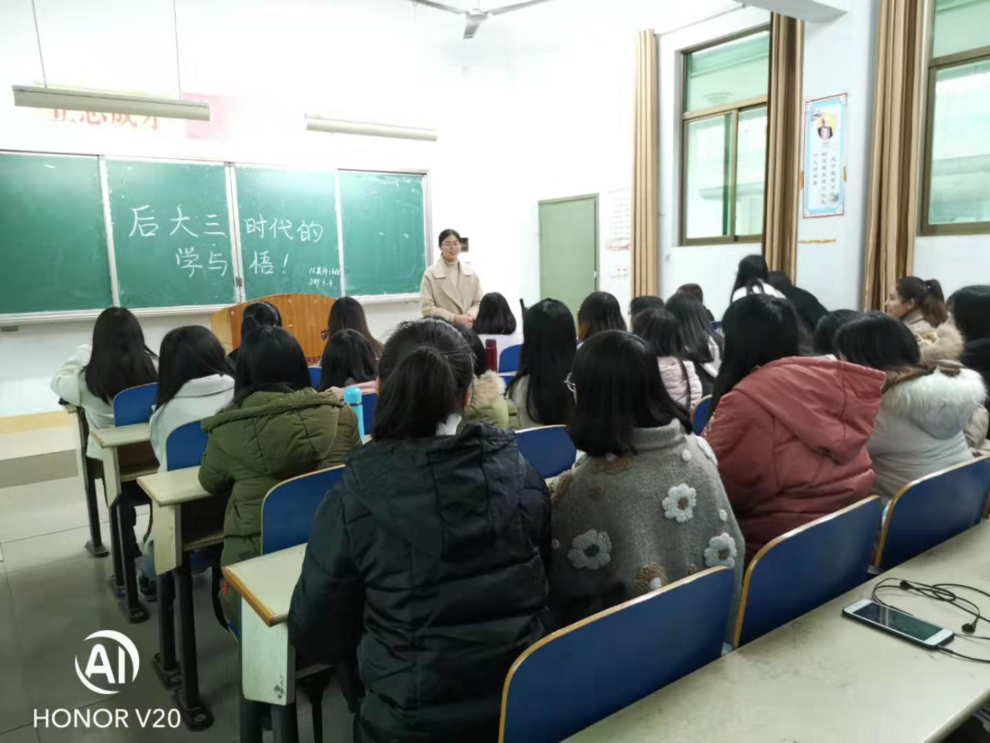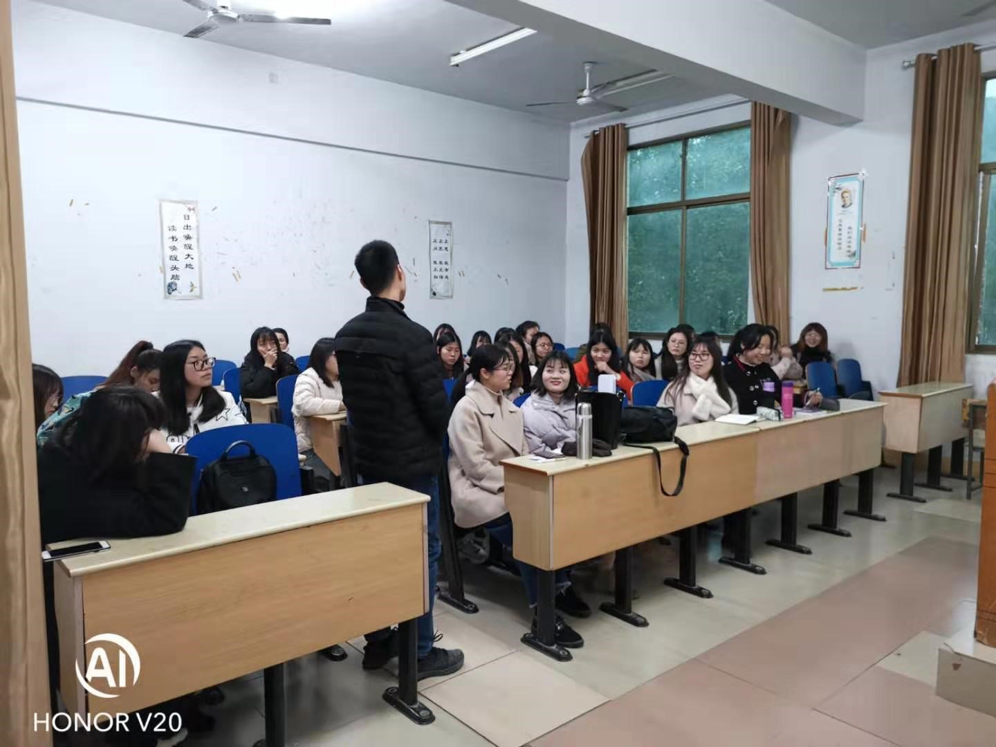 本网讯(通讯员 刘珍)2019年3月4日,由2016级英语(师范)1班组织的“后大三时代的学与悟”主题交流会在张家界校区逸夫教学楼3308举行,来自该院15级英语师范专业的刘樨、何柳和陈有为3位同学与该班全体同学参与了活动。