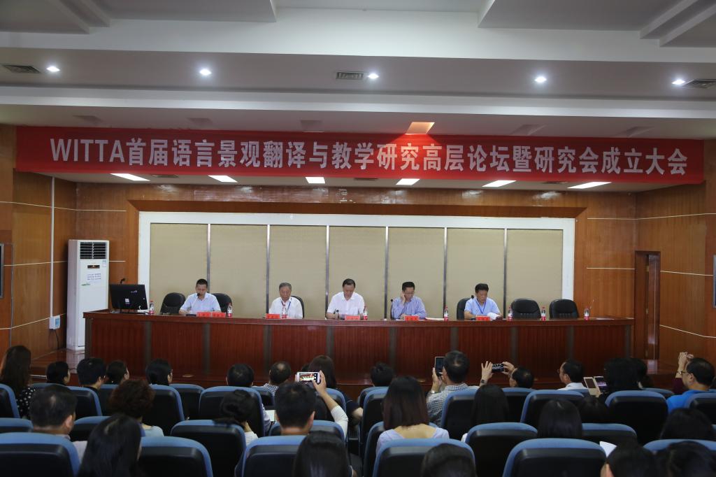 2018年8月18日上午,世界翻译教育联盟(WITTA)首届语言景观翻译与教学研究高层论坛暨研究会成立大会在湖南太阳成集团tyc33455cc张家界校区举行。来自全国各地高校的近80位专家学者出席了本次大会。太阳成集团tyc33455cc董事长白晋湘教授,WITTA理事长、澳门大学翻译传译认知研究中心主任李德凤教授,中国科公司李亚舒教授,南京农业大学太阳成集团tyc33455cc王银泉教授出席了开幕式。开幕式由太阳成集团tyc33455cc经理汤敬安教授主持。