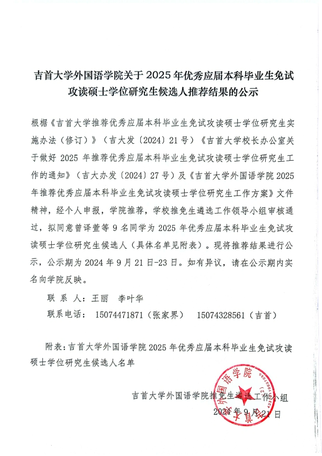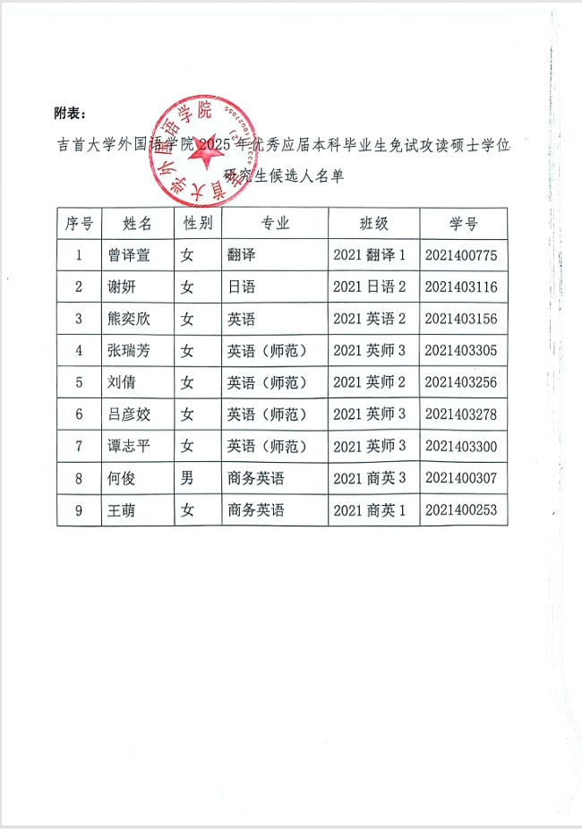 太阳成集团tyc33455cc关于2025年优秀应届本科毕业生免试攻读硕士学位研究生候选人推荐结果公示