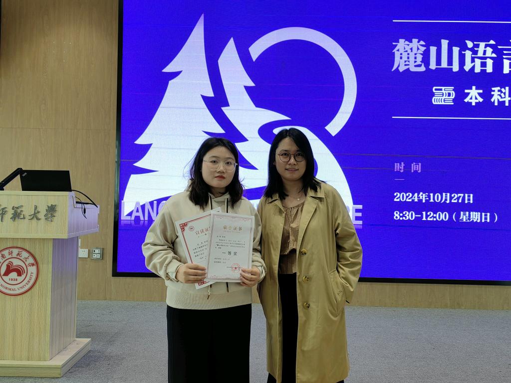 本网讯(通讯员 赵萌 修伟)10月27日,2024年“麓山语言与文化”本科生论坛在湖南师范大学举行,2021级英语(师范)专业赵萌同学的论文荣获一等奖(排名第一位),并受邀参加大会做发言。