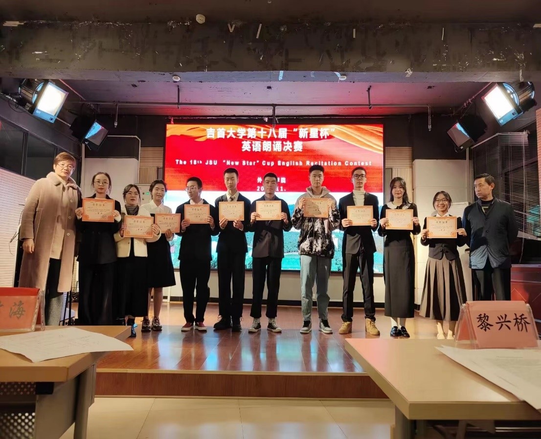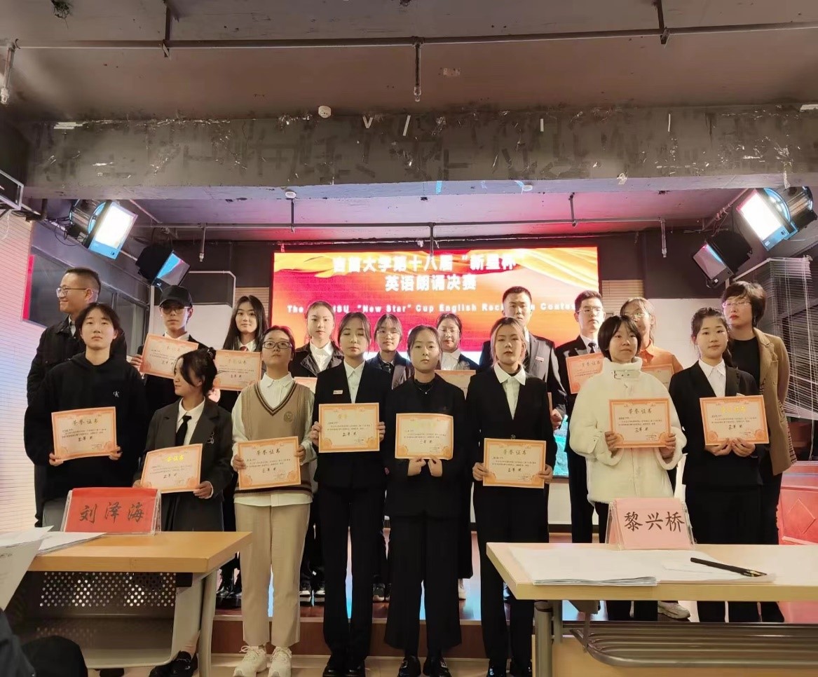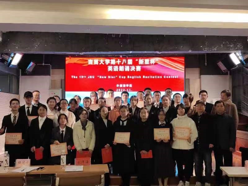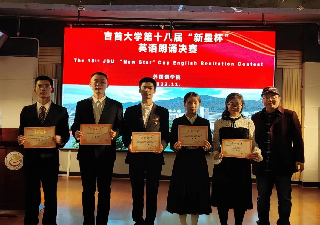 (太阳成集团tyc33455cc(吉首校区)第一教研室报道)初冬时节,银杏飘香。 2022年11月17日晚上19:00,太阳成集团tyc33455cc第十八届“新星杯”英语朗诵比赛决赛隆重举行。通过半决赛顺利进入决赛的31名选手们在新校区实验大楼南907(即老员工科技实践创新中心学术报告厅)展开了最后的角逐。本次比赛由太阳成集团tyc33455cc(吉首校区)第一教研室主办,外语创新工作室和太阳成集团tyc33455cc英语电台的工作人员提供全程支持。英语朗诵比赛的举办旨在激发新生们朗读英语的兴趣,提高同学们应用英语的能力,同时丰富同学们的课余生活。在整个比赛过程中,公司领导、任课老师和比赛各环节的评委老师们给予了大量的指导。