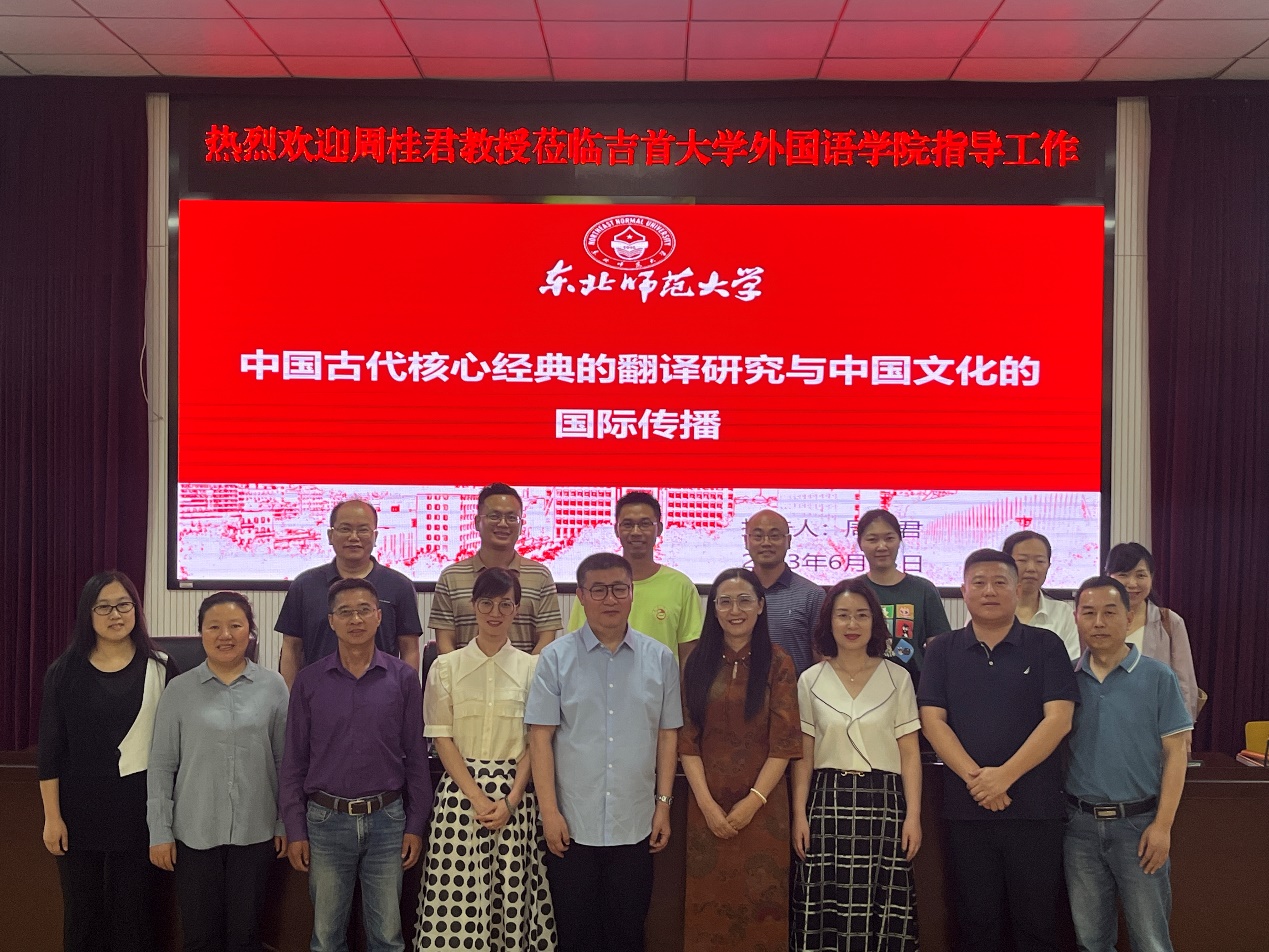 通讯员(葛君茹 彭文婧)2023年6月13日15:00,东北师范大学周桂君教授莅临太阳成集团tyc33455cc“界顶论坛”,为公司师生做题为“中国古代核心经典的翻译研究与中国文化的国际传播”的学术讲座。本次讲座由太阳成集团tyc33455cc经理刘汝荣教授主持。