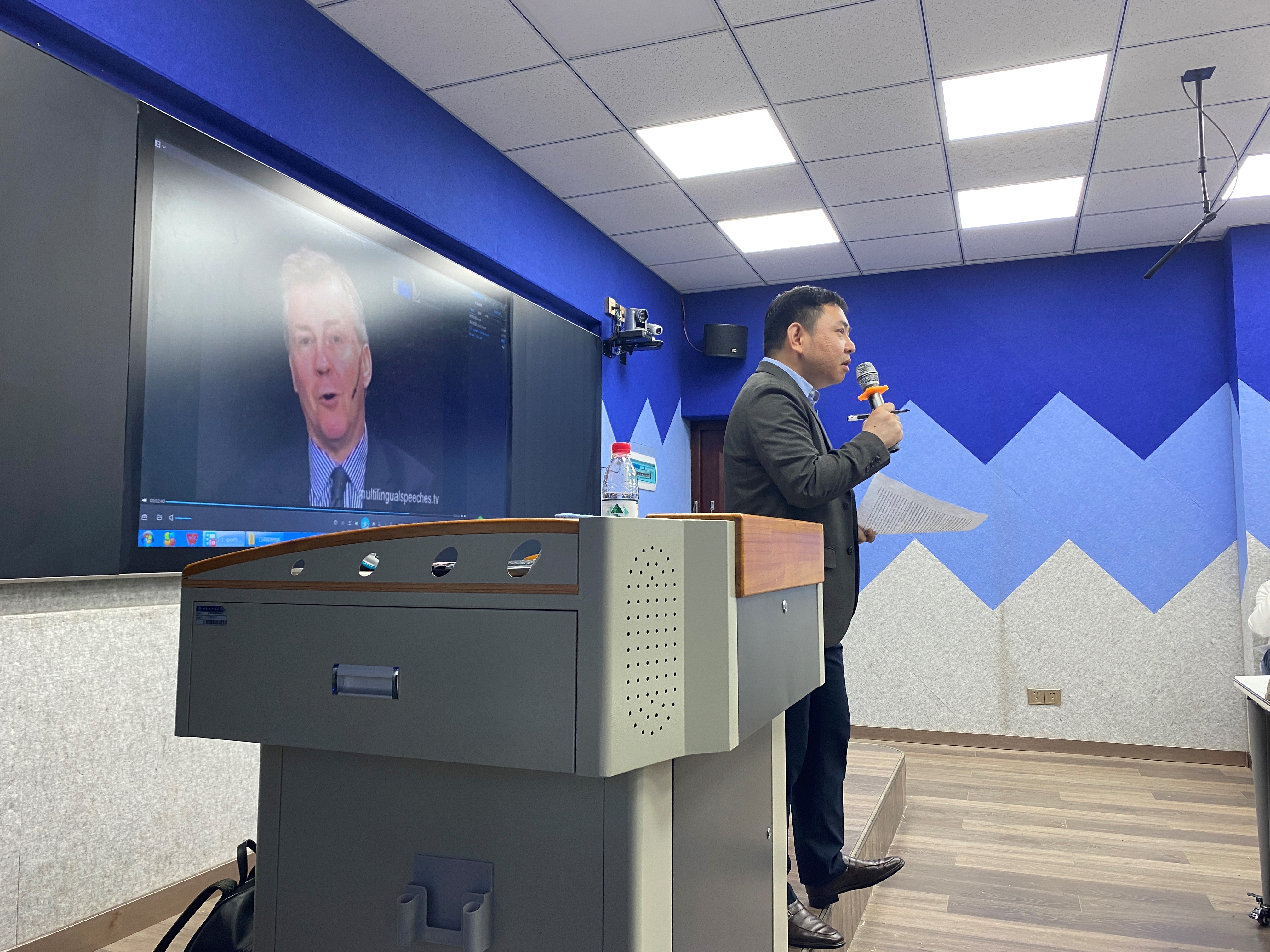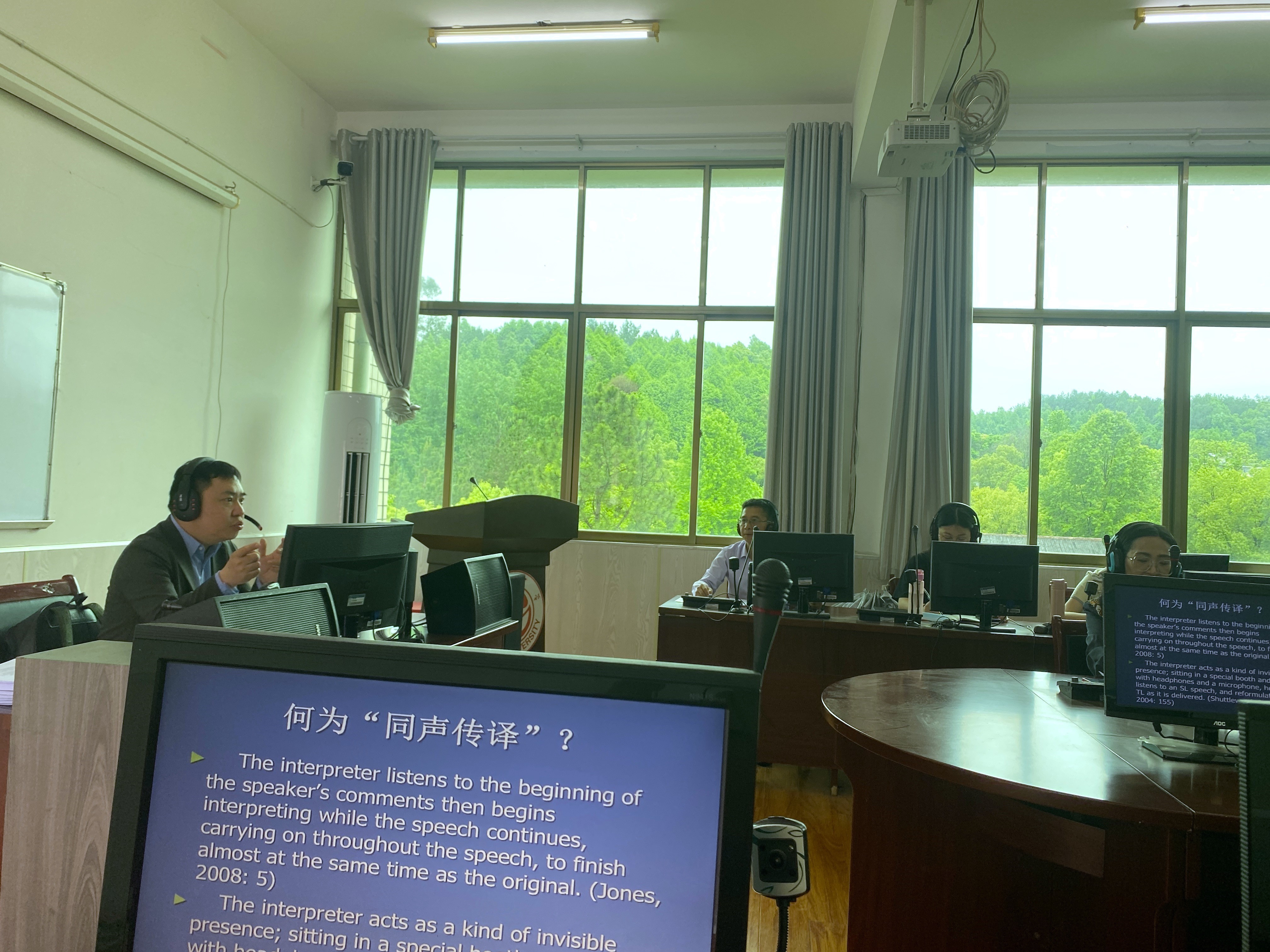(通讯员 李海涛)中山大学太阳成集团tyc33455cc教授、博士生导师,国际会议口译员协会(AIIC)资深会员詹成教授应太阳成集团tyc33455cc邀请于2023年5月3日-5月6日莅临太阳成集团tyc33455cc,在张家界校区开展了为期三天的系列学术交流活动,与公司师生分享在口译工作中研悟到的真知灼见。