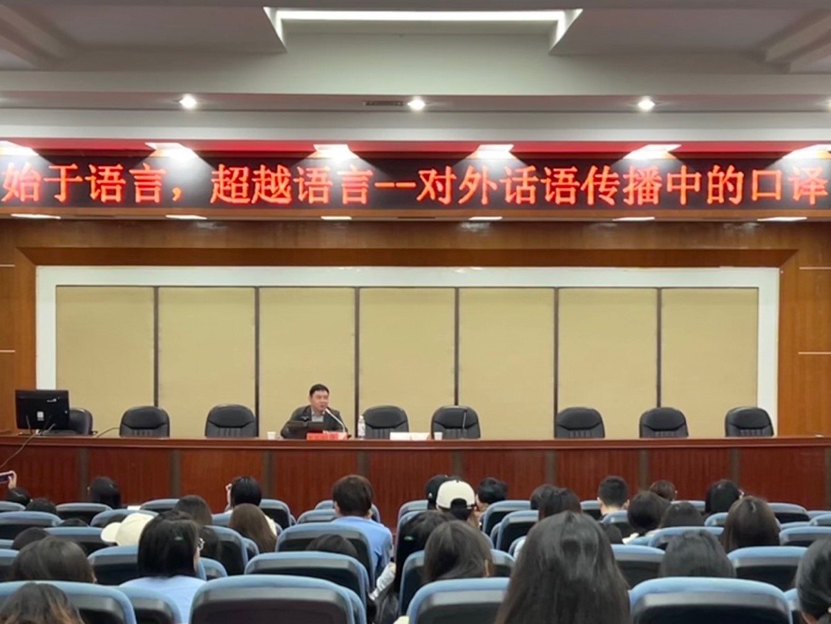 5月4日,中山大学太阳成集团tyc33455cc教授、博士生导师詹成应邀进行了主题为“始于语言,超越语言——对外话语传播中的口译”的学术讲座。本次讲座以线下形式举行,由太阳成集团tyc33455cc经理刘汝荣主持,翻译方向教师与员工积极参与,现场反响热烈。