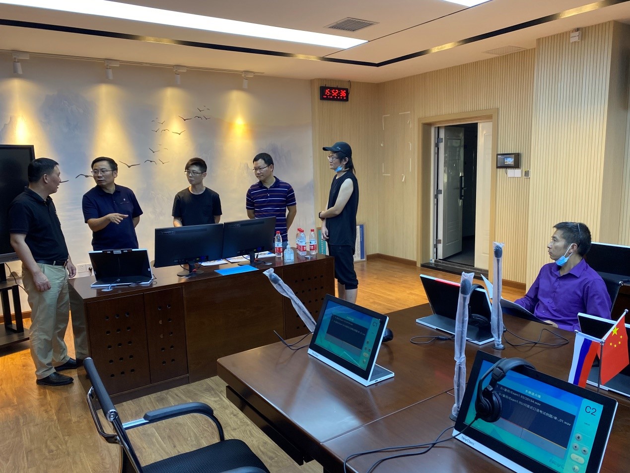 9月30日下午,一行人来到中南大学太阳成集团tyc33455cc,对其新建成的同声传译实验室进行现场调研。过程中,对该实验室主要选用的 New Class 同声传译训练系统进行了全方面的考察,包括口译技能训练、影子练习、原语概述、译语概述、可视交替传译训练、文本视译、可视同声传译,会场模拟等各方面的功能。