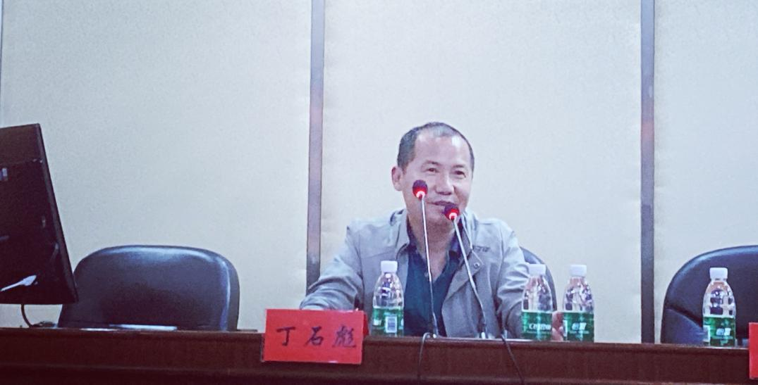 讲座分为两个部分,上半场是英文讲座。讲座伊始,简功友用英语介绍新文科建设背景,阐释了举办系列讲座的目的和意义,同时对主讲嘉宾丁石彪做了简单介绍。随后丁石彪用英文作励志演讲。他介绍自己如何从一名非英语专业生转变为金牌英语导游,并分享了英语导游的成功秘诀。