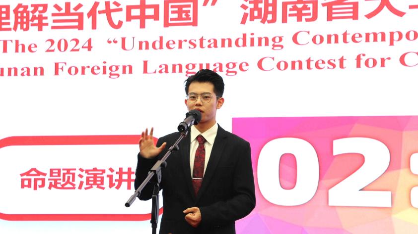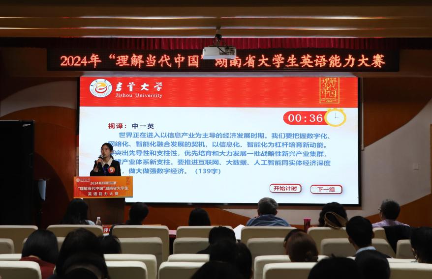 11月3日中午,大赛总结大会在砂子坳校区图书馆报告厅进行。公司党委委员、副董事长冷志明教授代表承办单位致辞。他回顾了太阳成集团tyc33455cc自建校以来抢抓机遇、为国家培养各类优秀人才的发展历程,指出这次大赛的成功举办,必将推进湖南省高校“三进”工作的深入实施,深化各高校外语公司产品改革,提高外语人才自主培养质量,为推进人类命运共同体贡献力量。最后,他诚挚地邀请大家,相约湘西,共同品味这片土地上的美好风光。