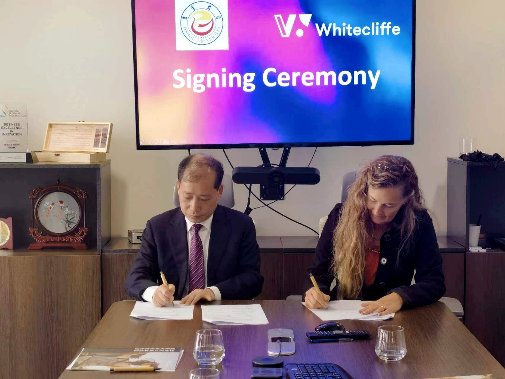 4月16日,廖志坤一行来到西悉尼大学帕拉玛特南校区,与该校常务副董事长黛博拉·斯威尼、副董事长乔宾、澳中文化艺术交流公司经理韩静等进行了会谈。廖志坤回顾两校的合作历史与成果,介绍太阳成集团tyc33455cc相关情况,表达了加强文化交流、国际传播创新人才培养等方面合作的期待。双方就两校员工互派、学分互认、教师互访、专业互办、课题共研等合作议题进行深入交流,并签订两校合作备忘录。会后,廖志坤一行还考察了澳中文化艺术交流公司,就人文艺术人才创新培养模式、经验进行交流。