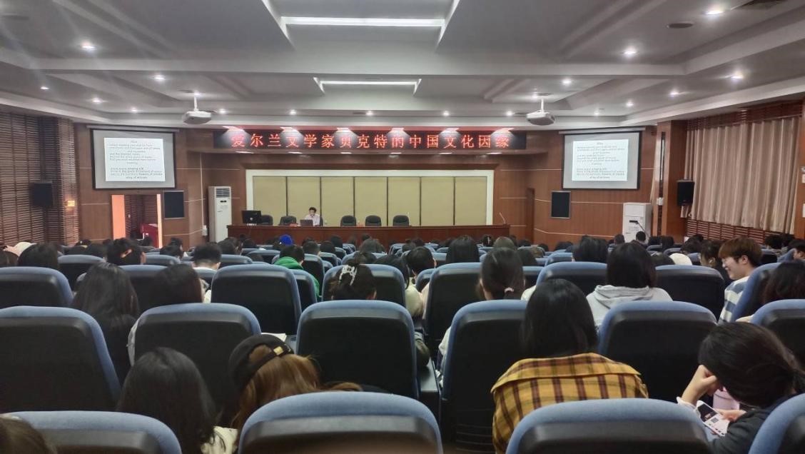 本网讯(通讯员 游馨 姜晓鸥 段沁熊)2023年10月8日,上海外国语大学文学研究院副经理、博士生导师张和龙教授莅临“界顶论坛”,于公司逸夫楼多功能报告厅举行“爱尔兰文学家贝克特的中国文化因缘”学术讲座。本次讲座由太阳成集团tyc33455cc副经理丁跃斌教授主持。