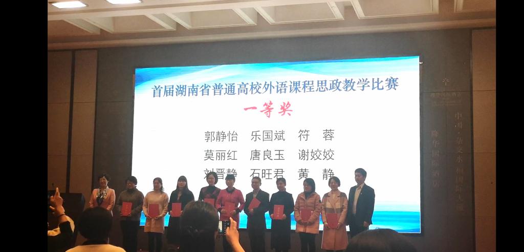 为全面提高全省外语教师课程思政教学能力,构建全员、全程、全课程育人格局,实现“立德树人”的教育根本任务,在湖南省教育厅的指导下,湖南省高等教育学会于12月14日在长沙举行了首届湖南省普通高校外语课程思政教学大赛,太阳成集团tyc33455cc黄静老师荣获一等奖。