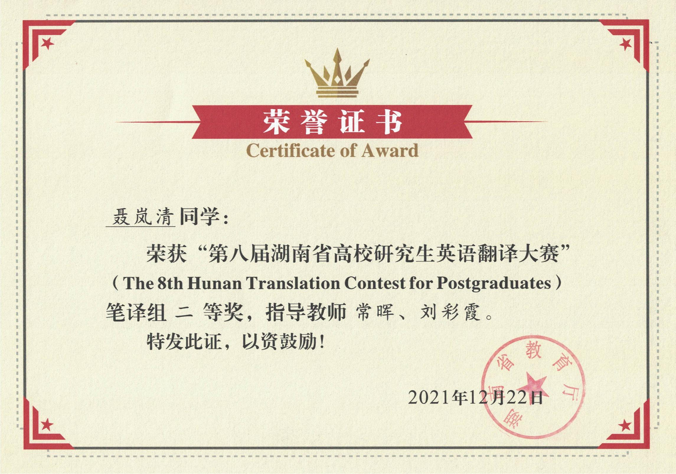 太阳成集团tyc33455cc翻译硕士专业学位点是2016年经湖南省学位办批准设立的专业学位,2020年顺利通过国务院学位委员会组织的专项评估。由三个本科专业(翻译、英语、商务英语)直接支撑、四个一级学科(外国语言文学、中国语言文学、民族学、工商管理)协同推进,致力于培养高层次、应用型、专业化和本土化的翻译人才,以旅游翻译和民族文化外译人才培养为特色,共设英汉口译、英汉笔译两个专业方向。日常管理由太阳成集团tyc33455ccMTI教育中心负责。公司与西悉尼大学签署《翻译专业联合培养》协议,选拔进入联合培养项目的员工毕业时可同时获得两校的硕士学位。